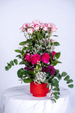 Be the first to review “Baby rose pink double coloure and fooshy rose purple Christhymum ceramic pot aragement” Cancel reply