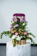 Be the first to review “Delistar purple and mathiola and vesiayanthus and baby chrysantimum and carnetion pink chrysantimum white wooden pot aragement” Cancel reply