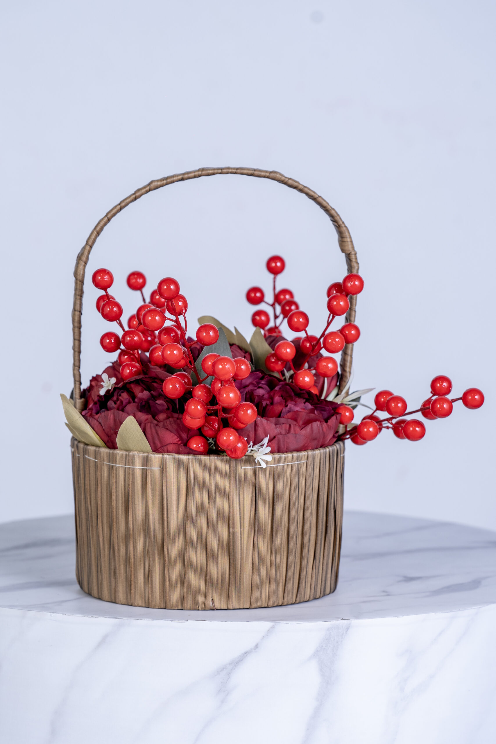 Be the first to review “Red Peonic with Grape Accessories Basket (Artificial)” Cancel reply